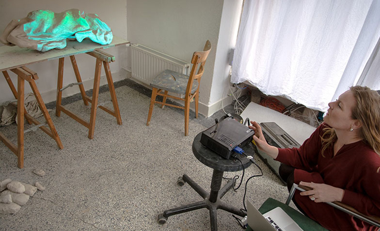 In de werkplaats 'Beeldenstorm' te Eindhoven kan je onder begeleiding zelf aan de slag. Dit najaar werk ik in mijn atelier aan de afwerking van de huid.