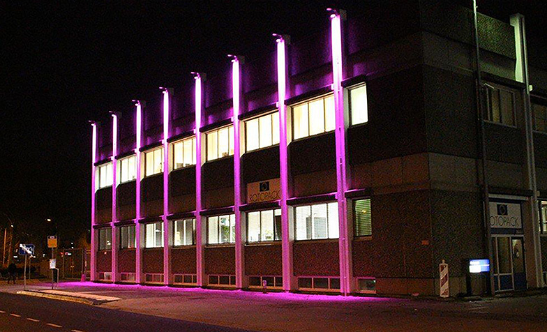 Roto Smeets gelegen aan de Industrieweg Havenkwartier Deventer, zijn mijn buren. De behoefte om dit wat gedateerde gebouw een tijdelijke andere uitstraling te geven, kon ik uitvoeren tijdens de openingshandeling van de Industrieweg.