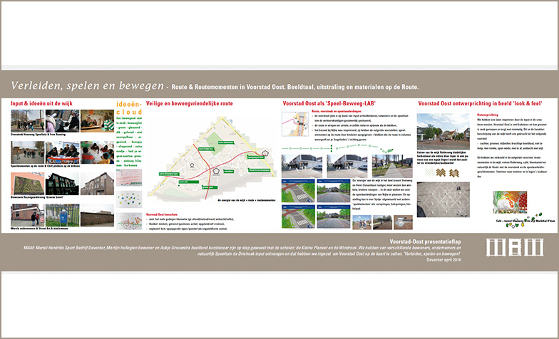 Omdat er vanuit de bewoners een concrete vraag was over veilig spelen in de wijk, hebben we ter plekke besloten samen te gaan werken. Bewoner Martijn Hullegien, Sportbedrijf Deventer Muriel Hendriks en Beeldend kunstenaar Aukje Grouwstra zijn onder de titel MAM aan de slag gegaan.