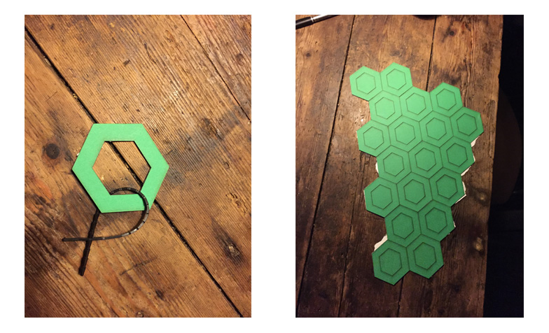 De vorm leent zich ook prima om uitsnedes in karton of ander materiaal te maken. Zie de foto waar in het Smartlab Deventer de vorm is gelasercut om als ‘frisbee’ tijdens de opening de zaal in te gooien.