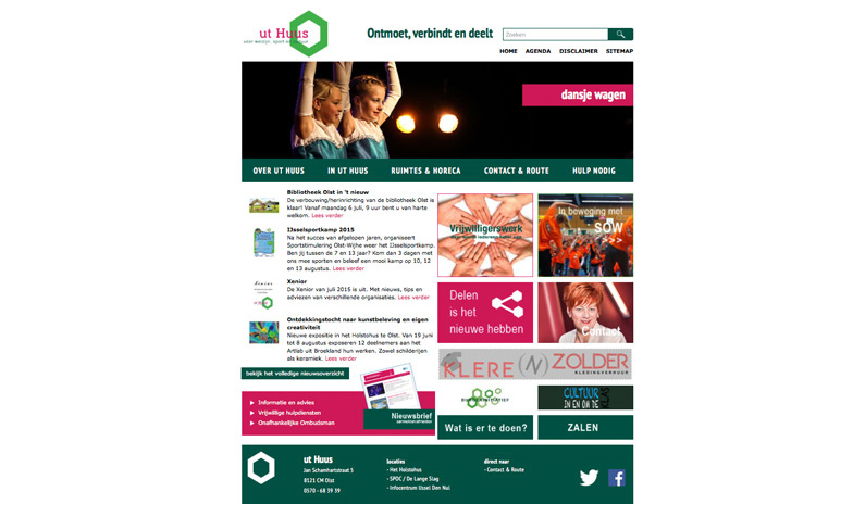 Sinds de oprichting van Stichting Kulturhus Olst-Wijhe ben ik als grafisch ontwerper verbonden met de medewerkers van deze club. Door maatschappelijke veranderingen gaat het Kulturhus nu verder onder de naam ‘ut Huus’.